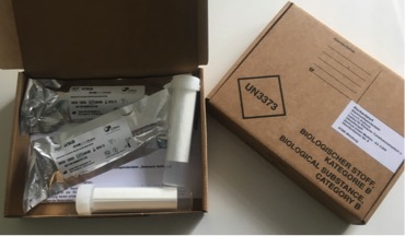 Wattestäbchen für die Speichelproben, Formulare und Informationsmaterial